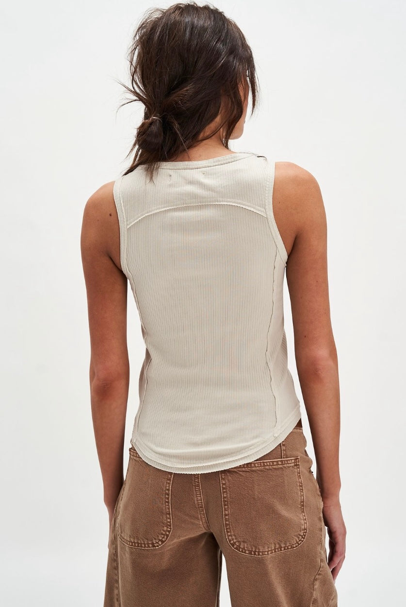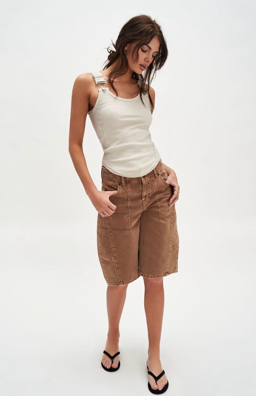 A staple tank gets a touch of edge with this hardware-adorned style from We The Free, featured in a ribbed fabrication with overall-inspired straps for an unexpected accent.