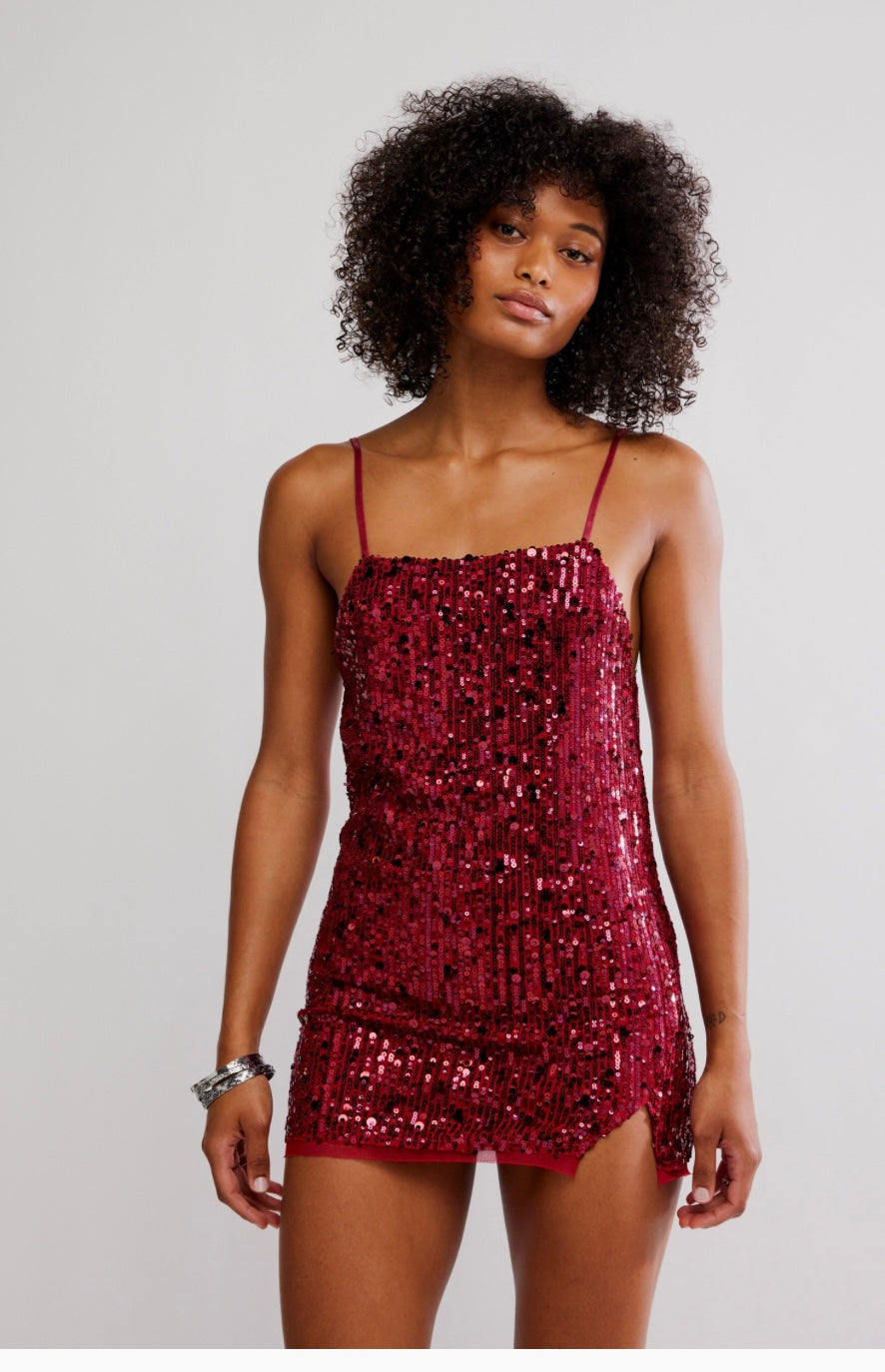 This dazzling mini slip from Intimately is featured in a lightweight fabrication with a straight neckline, side slit, and sequin embellishments for an enchanting finish.