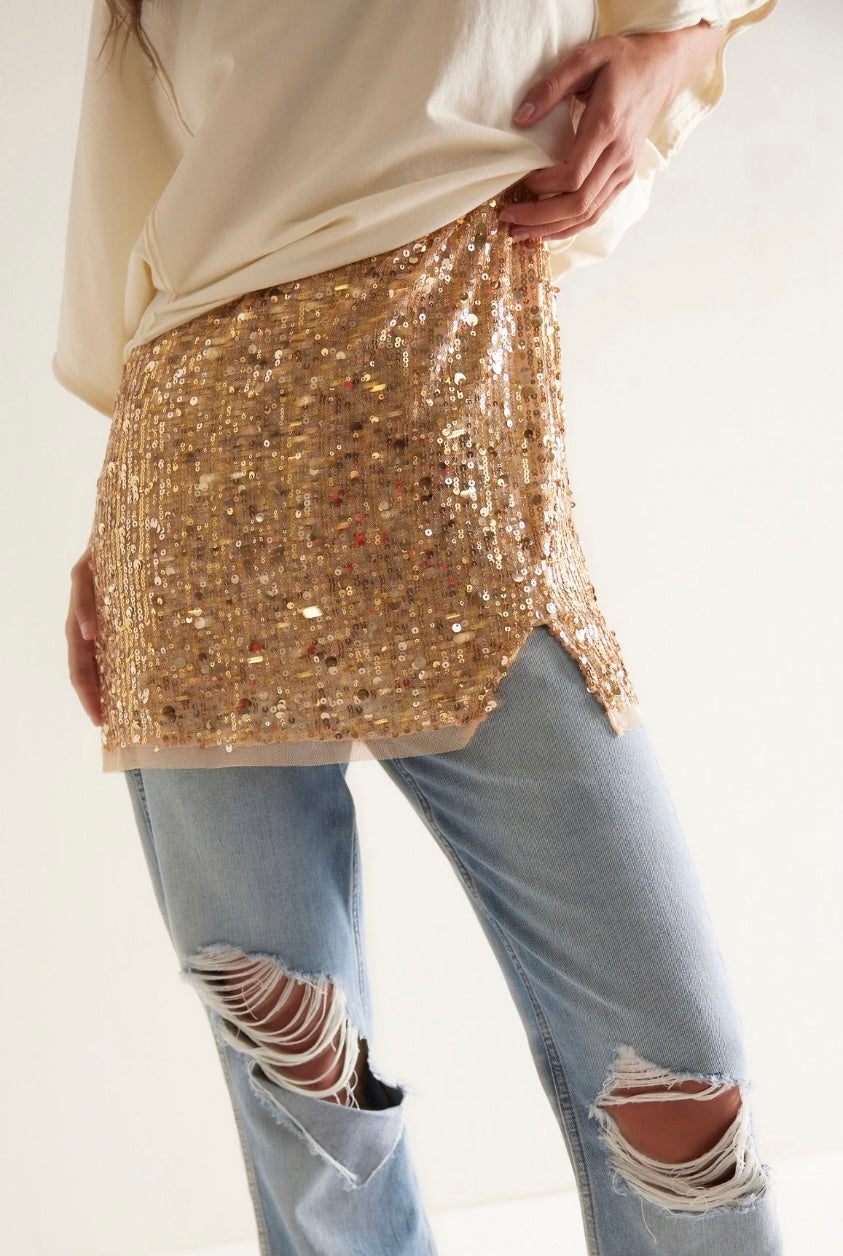 This dazzling mini slip from Intimately is featured in a lightweight fabrication with a straight neckline, side slit, and sequin embellishments for an enchanting finish.
