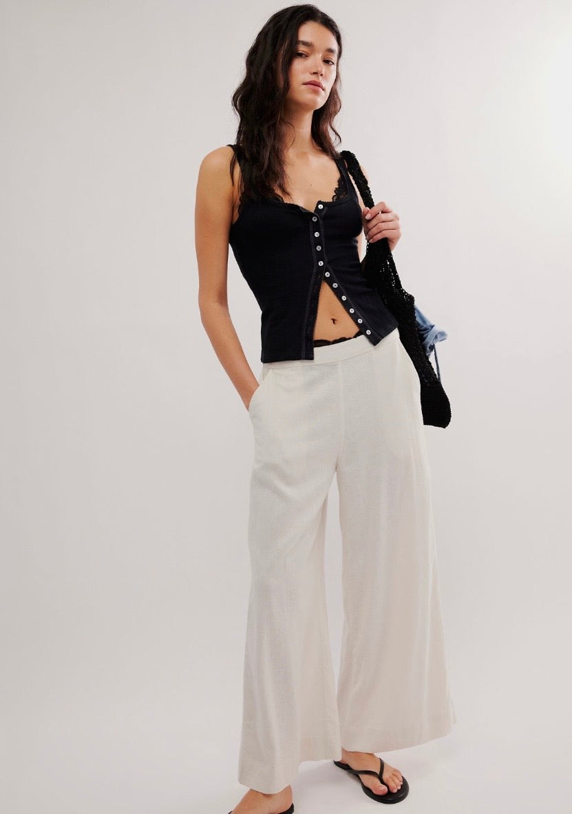 The perfect timeless tank, this sweet staple is featured in a soft cotton fabrication and button-front style with a wide square neckline and pointelle detail.