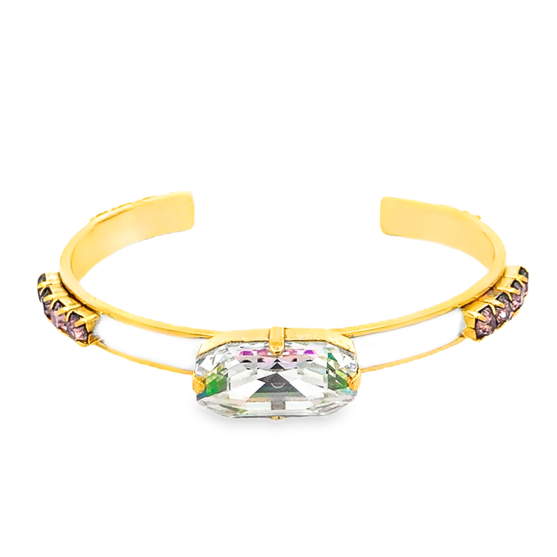 The Briar Cuff - a playful and unique addition to your accessory collection. Made in Canada with antique gold plated brass, high quality crystals, and hand painted enamel, this cuff is a one-of-a-kind piece that will add a touch of quirk to any outfit!