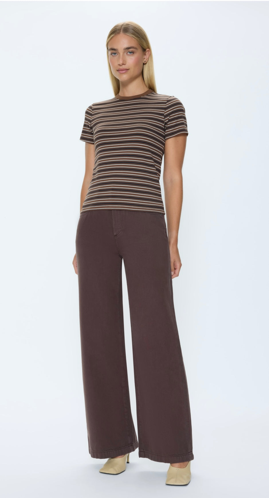 The waist-hitting length ensures a flattering fit with all your favorite bottoms, from skirts to jeans. Layer it, tuck it, or wear it solo – the Alba Tee is designed for effortless versatility. Perfect for the woman who appreciates classic style with a modern edge, you'll find yourself reaching for this tee again and again.