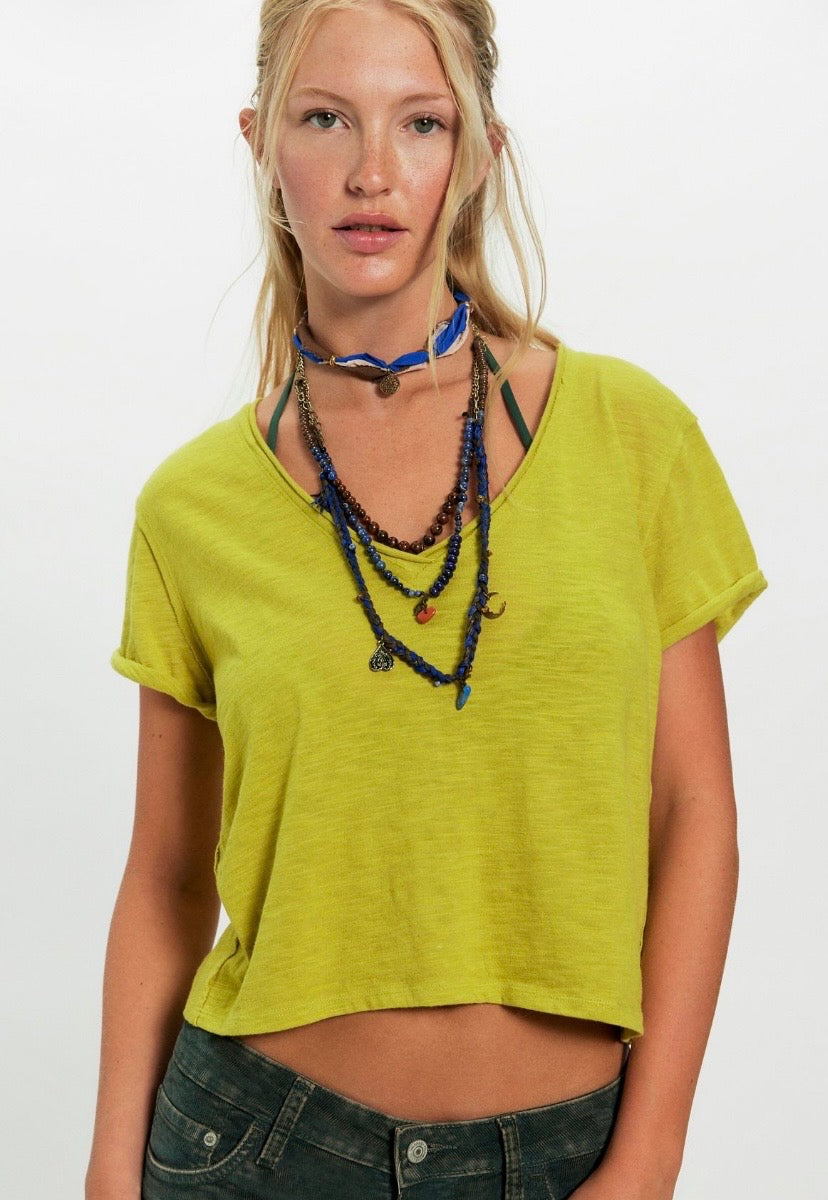 Perfect for layering, this short-sleeved tee from We The Free is featured in a boxy cut and a V-neckline for endless outfitting potential.