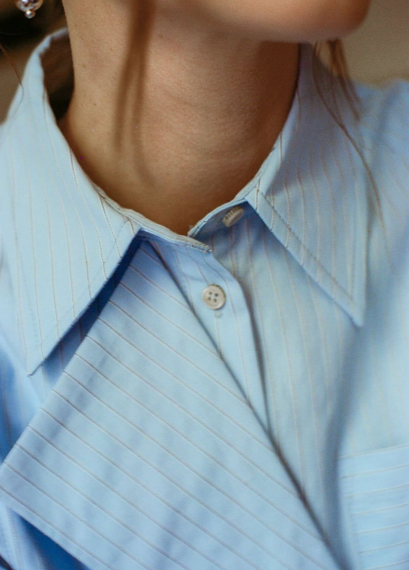 A timeless button-up, Tilda features a relaxed fit and long sleeves that balance soft structure with modern ease. Designed with a pointed collar and subtle sheen for quiet polish. Crafted from a smooth woven blend in Ecru, a clean neutral that transitions seamlessly from day to night.