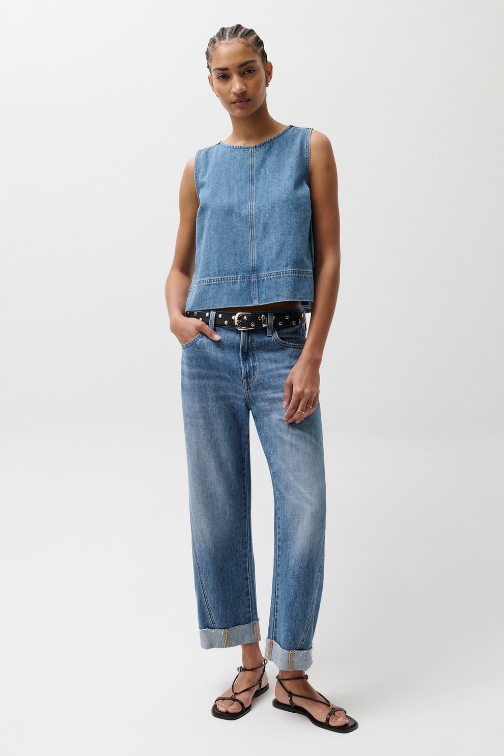 Kacey Mid Rise Cuffed Straight Leg