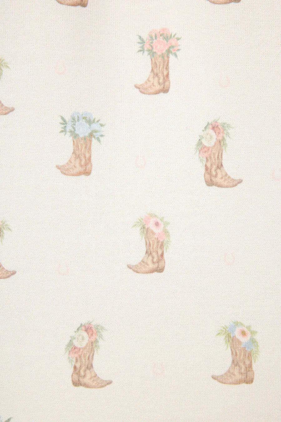 Saddle up for sweet dreams. These pajama sleep shorts are crafted in peachy jersey and sprinkled with illustrated cowboy boots topped with soft floral details. Finished with a comfy elastic waistband, adjustable drawstring, and delicate scalloped trim, they're made for slow mornings, lazy lounging, and kicking your boots off early.